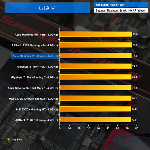 Given its Republic of Gamers branding, frame rates are an important delivery point for Asus' Maximus VIII Impact, and the mITX board delivers.