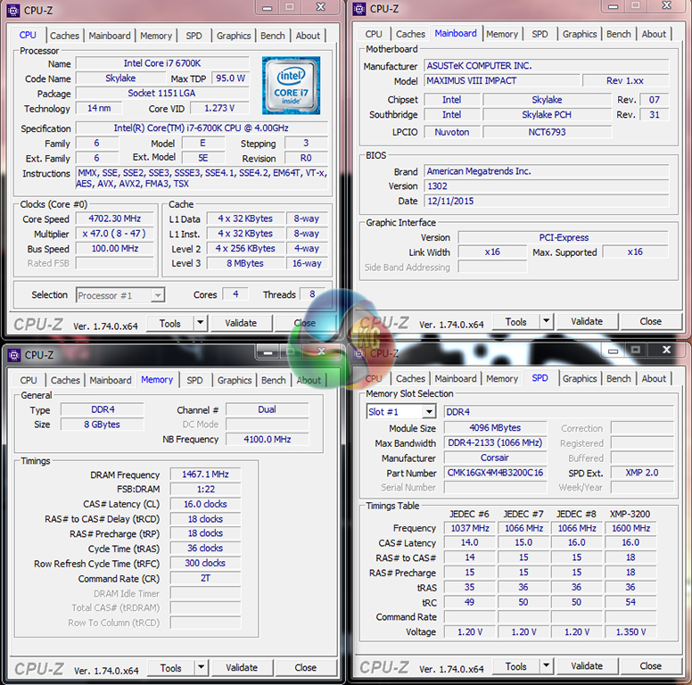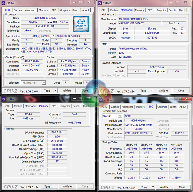 Asus' Maximus VIII Impact had absolutely no problems taking our Core i7-6700K to its frequency limit of 4.8GHz. Load voltage sat at around 1.37V (as validated by a multimeter), which was around 20-30mV less than the 1.40V we selected in the UEFI, due in large to the chosen LLC settings.