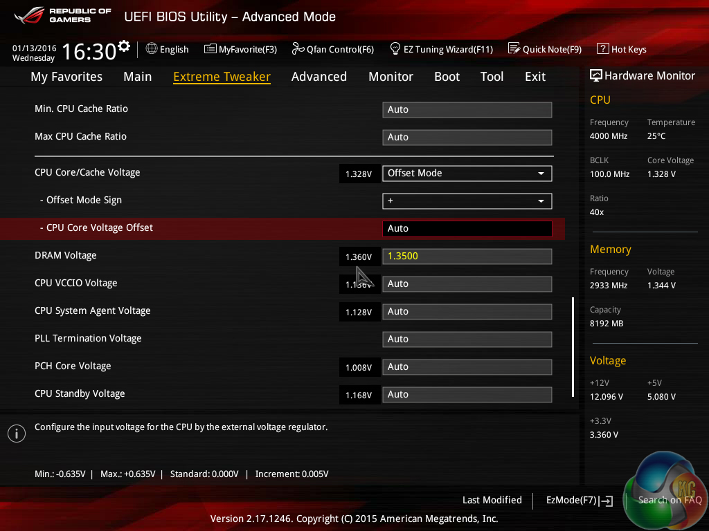 An offset CPU voltage was chosen, with the motherboard's automatic setting being selected as the base point.