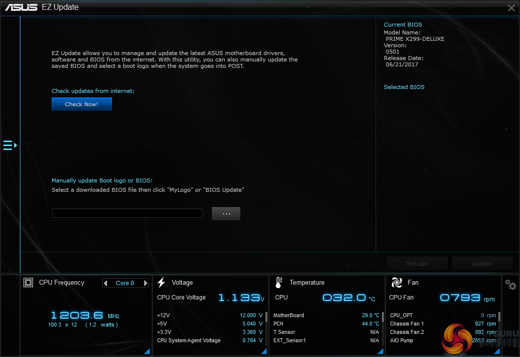 AI Suite 3 is the go-to point for any settings or information relating to system operations. Want to check temperatures and voltages or adjust multipliers for the CPU and speeds of fans? AI Suite 3. Want to speed up certain programs or reduce the amount of RAM-hogging operations on your system? AI Suite 3. Want to check for a BIOS update? AI Suite 3.