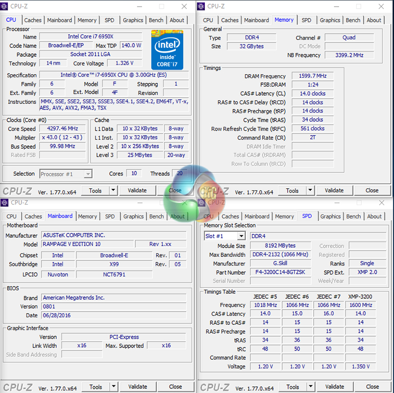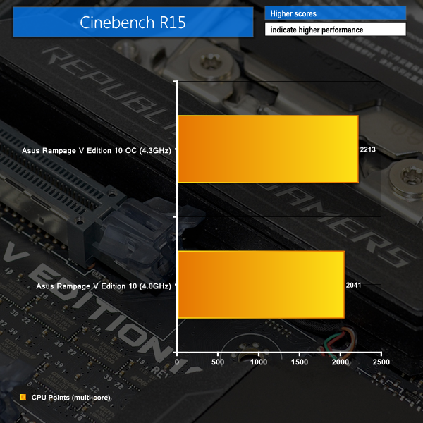 We were able to take out 6950X CPU to its limit of 4.3GHz. The board was stable throughout testing and had no problems with applying the settings that were selected.