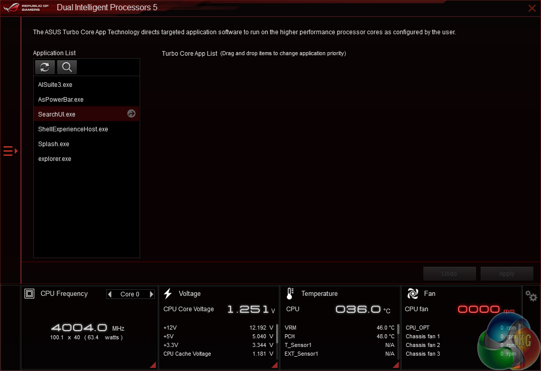Further system control options are available. Asus includes a tool which allows the CPU to speed specific applications by way of a frequency bump when the desired software is launched.
