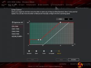 Fan speed control in ASUS’ UEFI is very good, though it is clear that ASUS would prefer you to use the Q-Fan Control option for setting up custom speed curves.