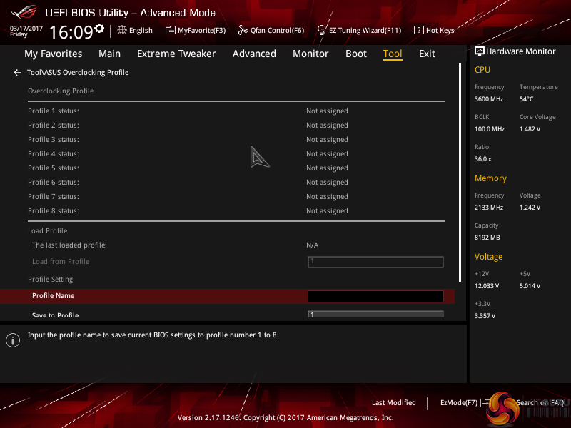 Up to eight settings profiles can be saved and named in the UEFI. Further profiles can be transferred through storage mediums such as a USB flash drive.