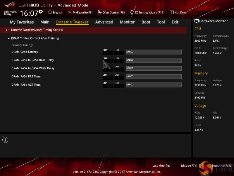 The UEFI used on ASUS' X370 motherboard is the same as the interface we have become accustomed to on the vendor's mainstream Intel motherboards (such as the STRIX Z270F Gaming). As such, our analysis follows a very similar tone.