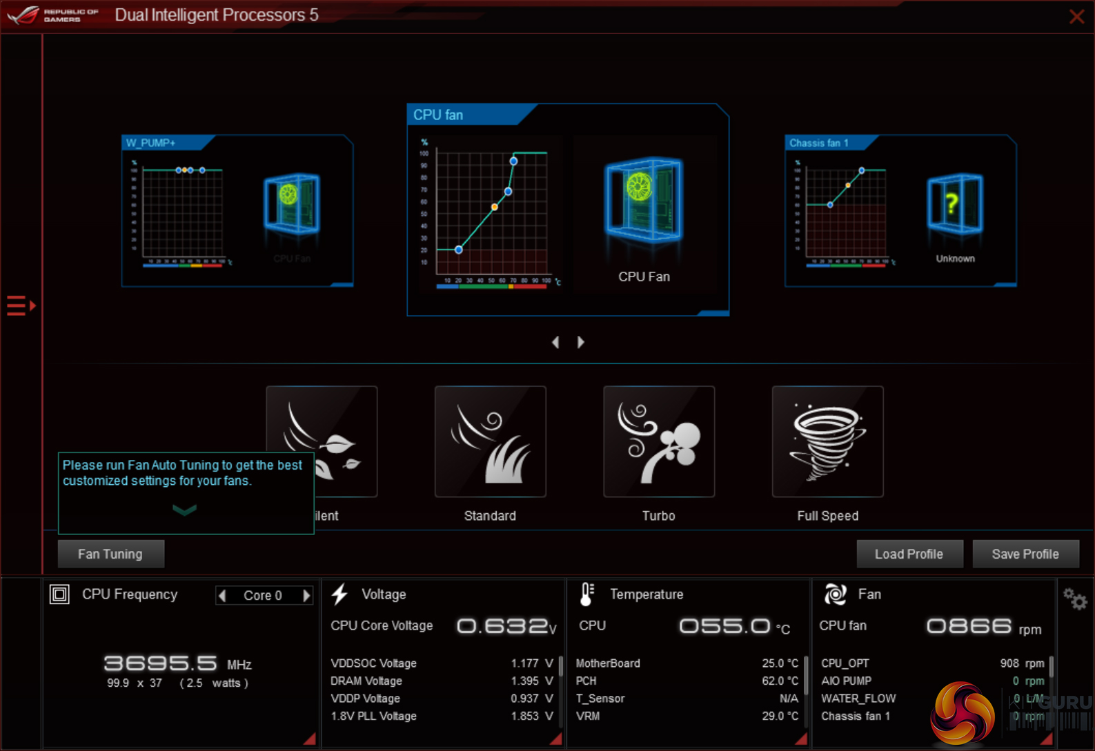 Automated system tuning conducted by the 5-way optimisation tool can also be selected inside AI Suite 3.