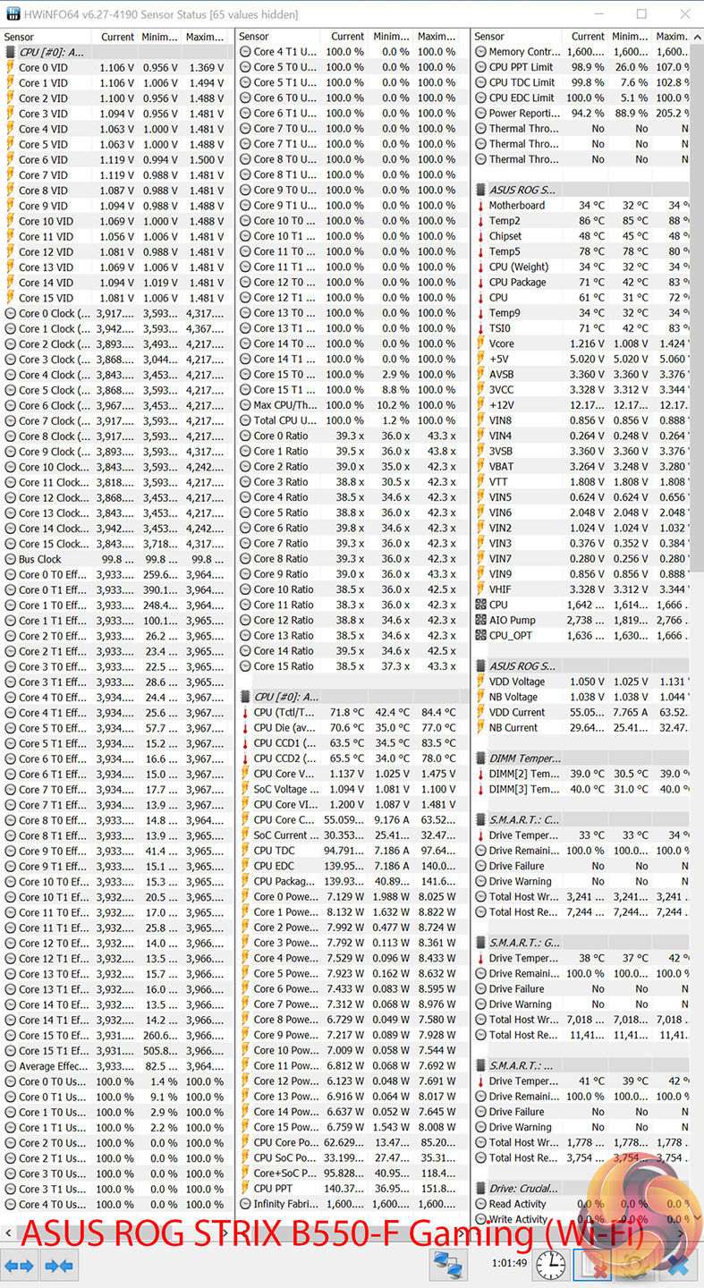 We took manual readings for the VRM temperature on the B550-F Gaming (WiFi) as it – annoyingly – does not feature a temperature sensor reading through HWiNFO64.