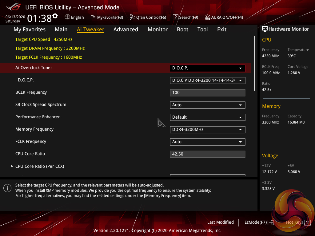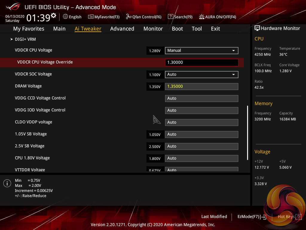 To test the ASUS ROG STRIX B550 motherboard’s CPU overclocking potential, we set the CPU Core Voltage to 1.30V and applied the relevant LLC setting.