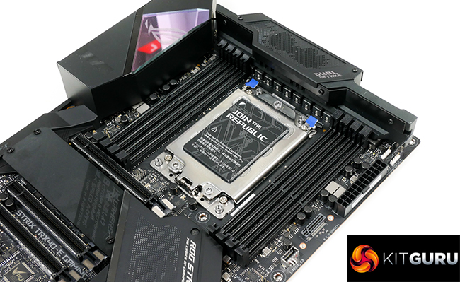 What particularly impressed me was the proficiency of ASUS' cooling solutions – in particular the VRM cooling. Deploying 16 60A Infineon power stages to handle the CPU load means that each stage isn’t stressed particularly heavily, even with a 32-core Threadripper CPU. That allows the electrical components to operate efficiently without over-reliance upon the VRM heatsink.