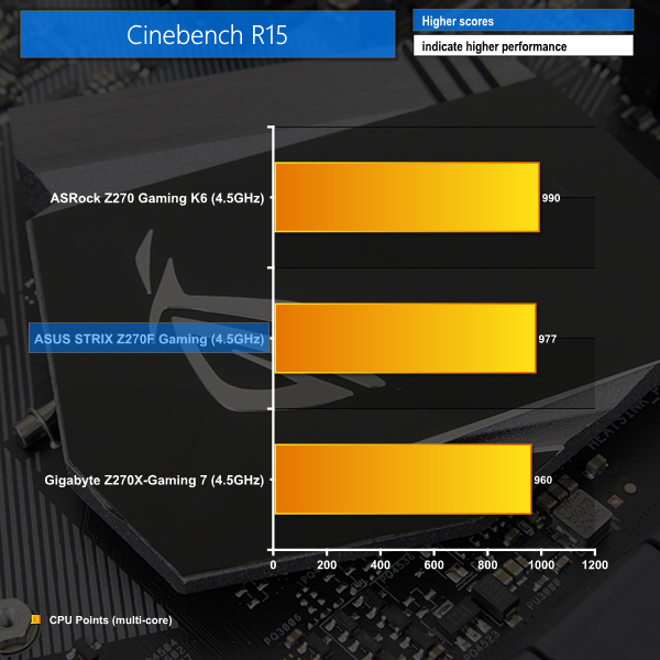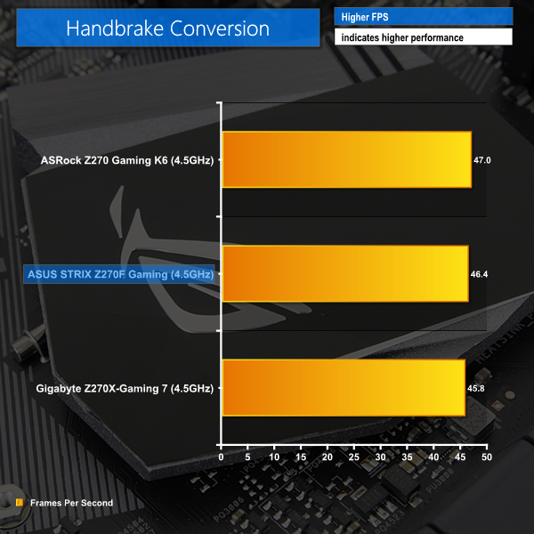 CPU performance from the STRIX Z270F Gaming is good. ASRock's competing option is a little faster and Gigabyte's is a little slower. Expect these margins to tighten as further stable BIOS releases are made available now that the chipset has been released to retail customers.