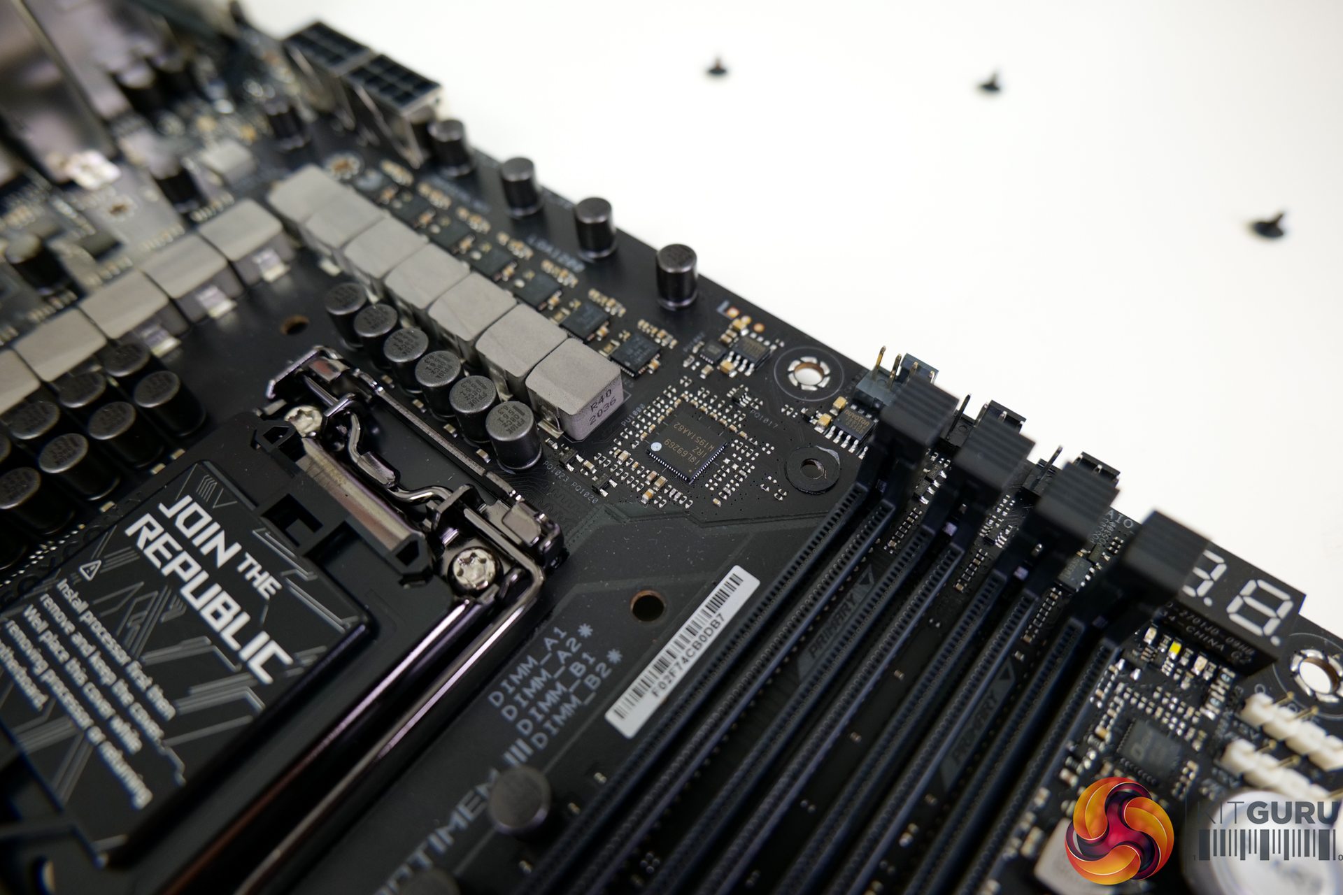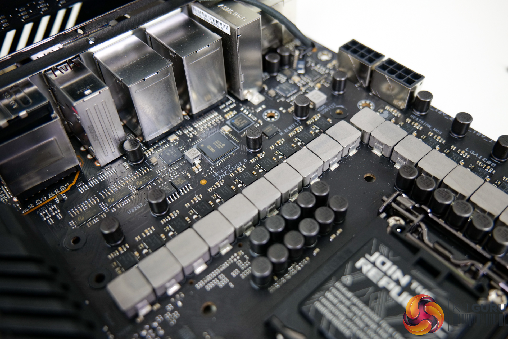 The 3 non-CPU VCore power stages are downgraded to the slightly lesser performing 70A 59880 power stages from Texas Instruments. But that is completely fine! And still we see the inclusion of 5K-rated MIL capacitors. This is a particularly high-performance power delivery solution that will have no problem for sensible daily usage as well as being capable of extreme OC applications.