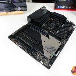 The VRM heatsink is gargantuan and is even bigger and beefier than the Z590-E Gaming WiFi’s block. Again, we get multi-tiered slabs of metal connected via heatpipe. And the left-side heatsink still extended as the rear IO cover and RGB housing. ASUS’ effort with the VRM heatsink design here is very impressive. And clearly ASUS has confidence in the implementation as there is no included fan or fan mount.