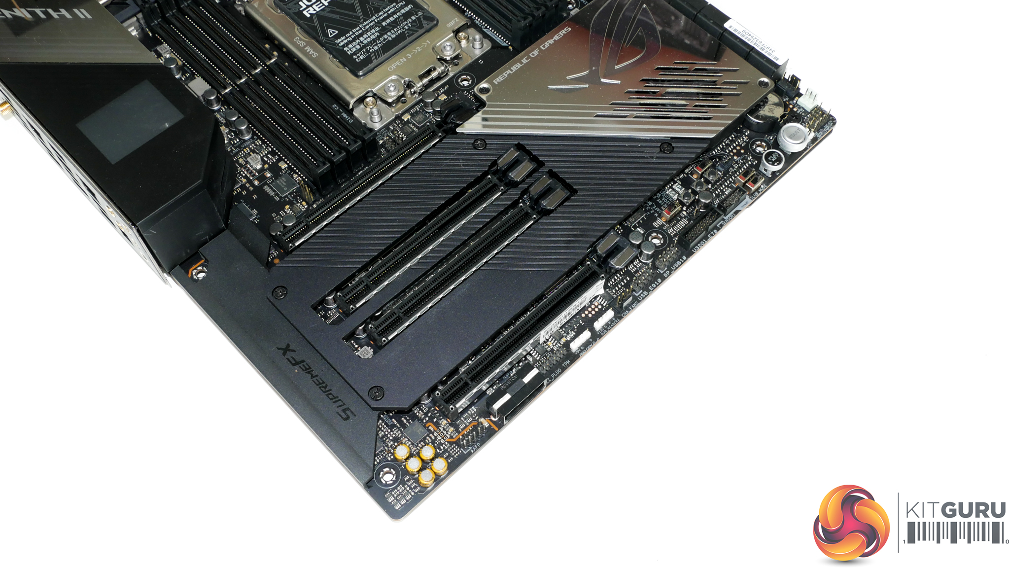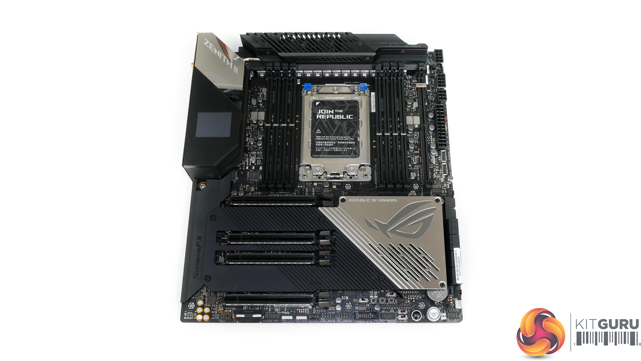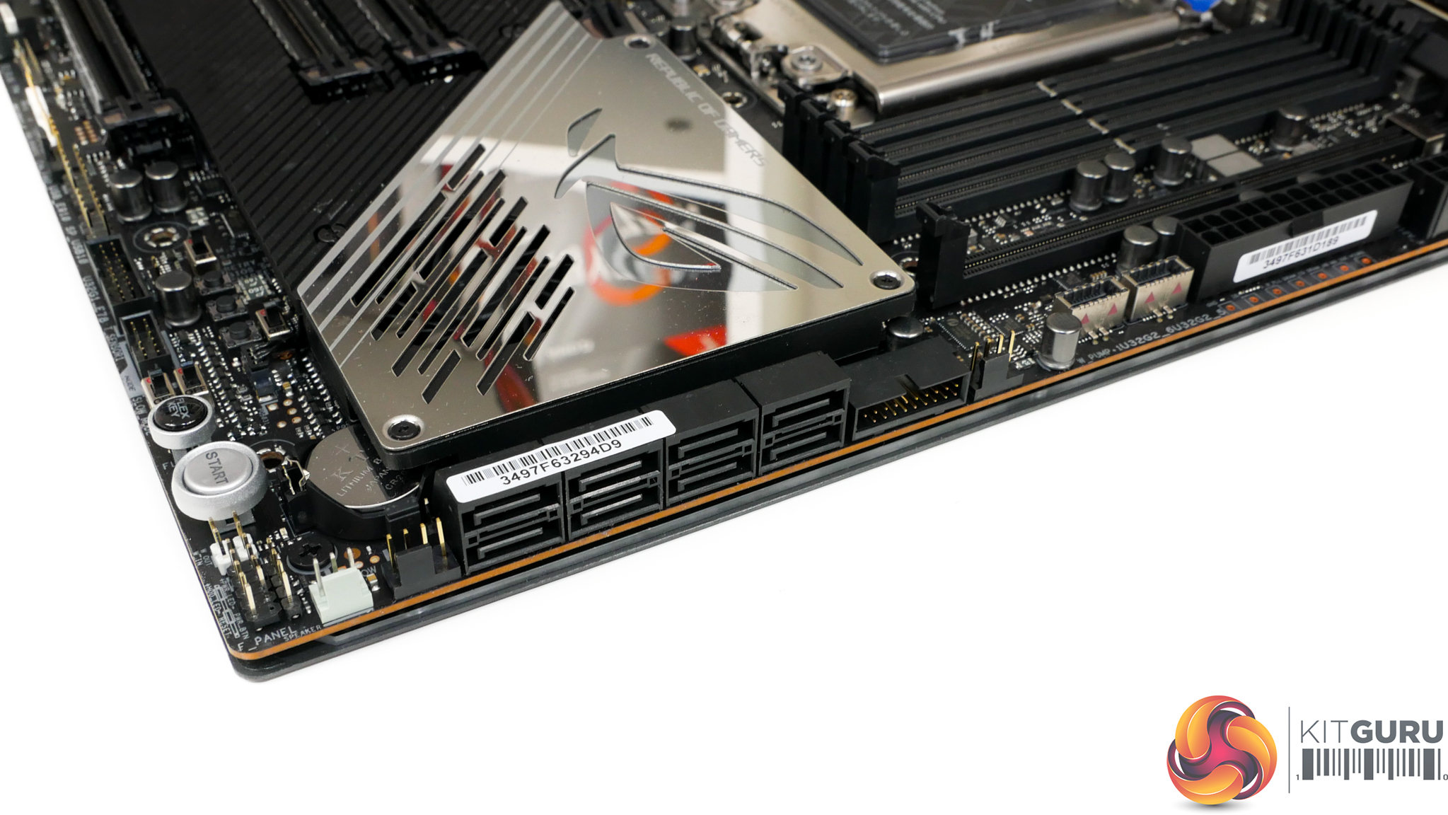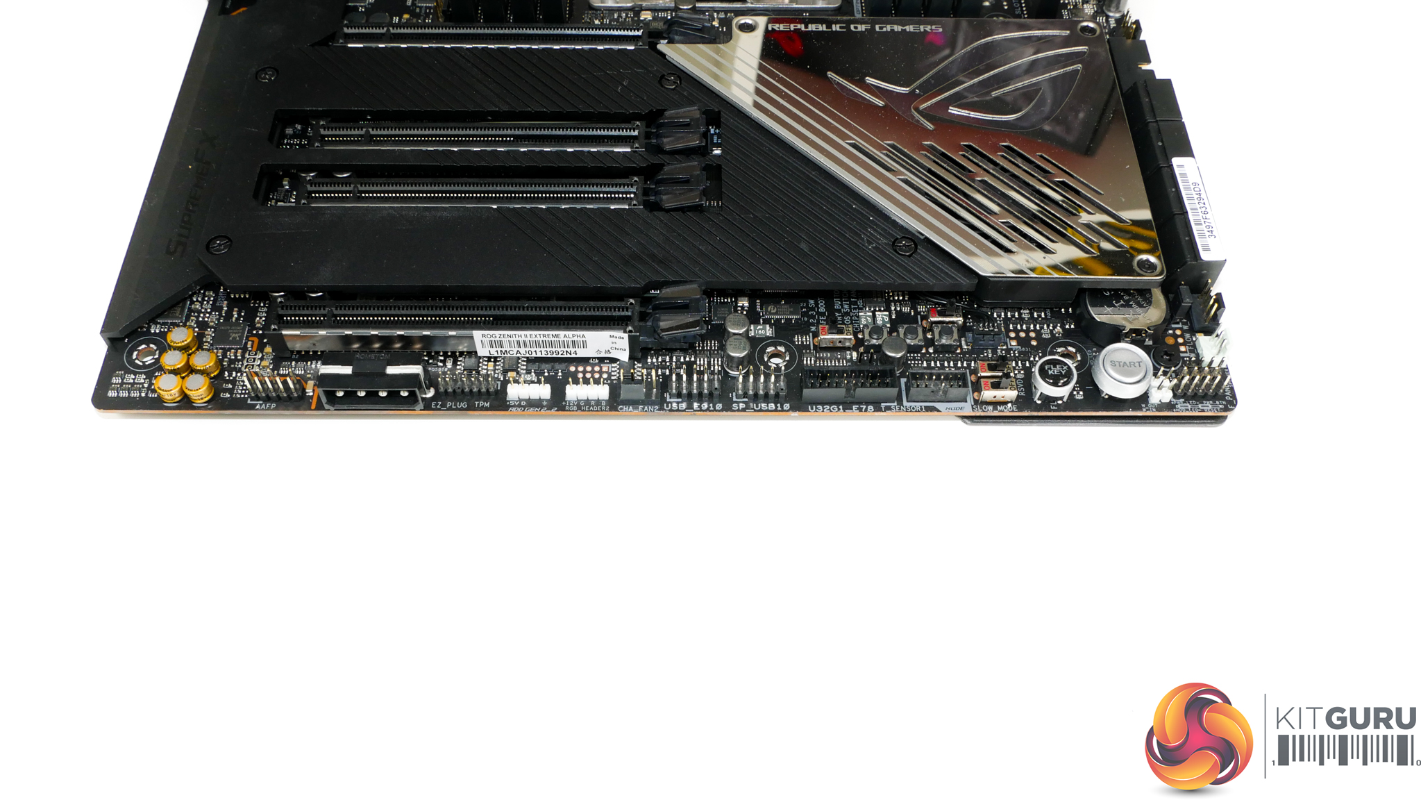 A large shroud covers the bottom half of the motherboard, but it is relatively easy to remove with the board out on a table. The shroud is made from aluminium and features M.2 SSD cooling pads. Adding together all of the heatsink weight provides a motherboard that weighs more than 2kg and feels extremely sturdy.