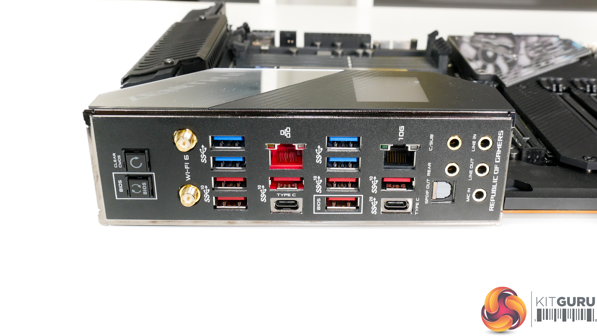 I would go as far as saying that the rear IO is pretty much perfect for a flagship, enthusiast motherboard. Obviously, you get the integrated IO shield and also the IO cover on the front of the board which houses the LiveDash OLED display.