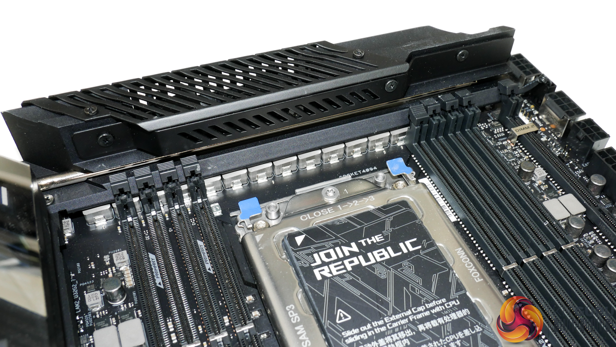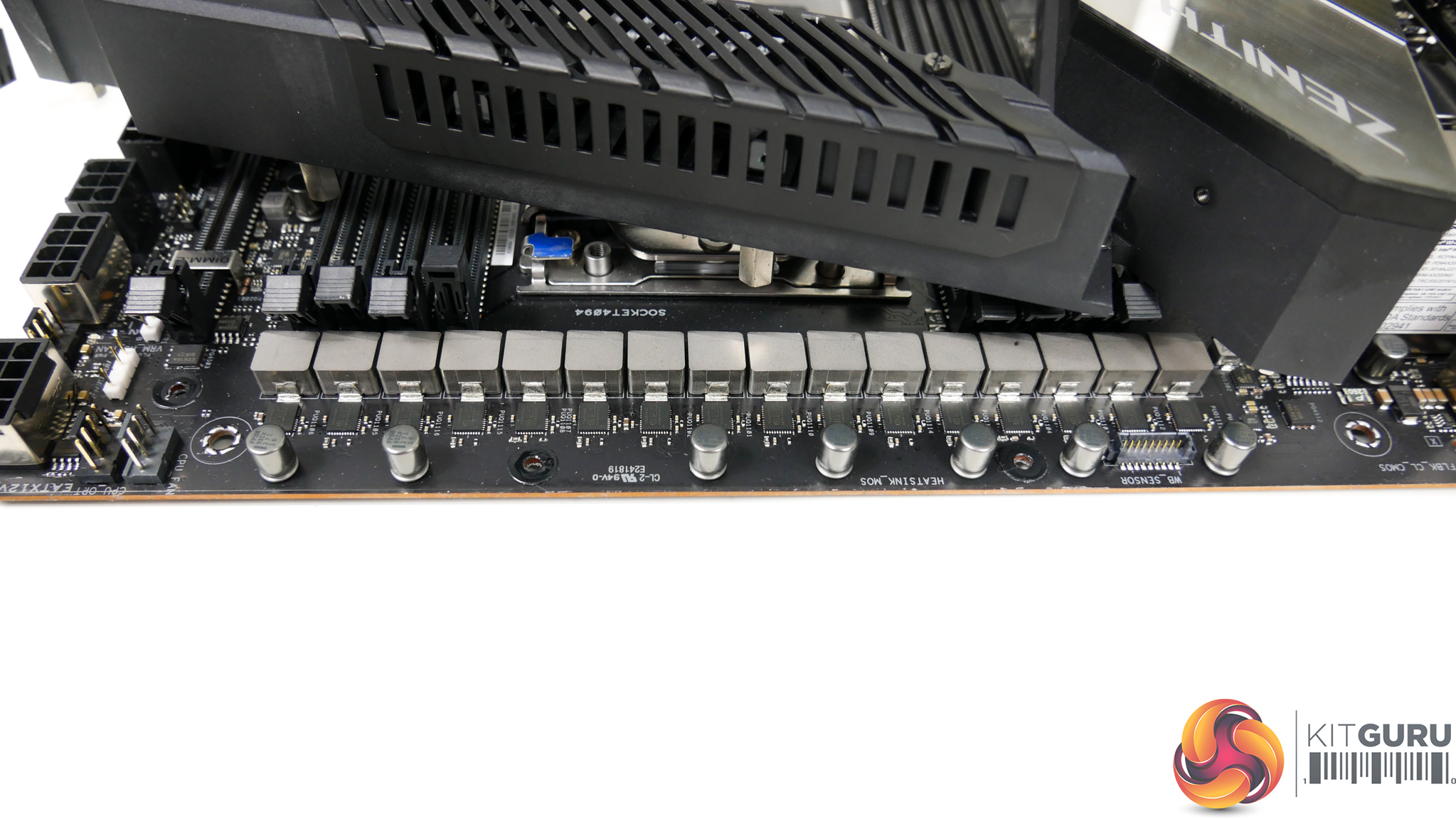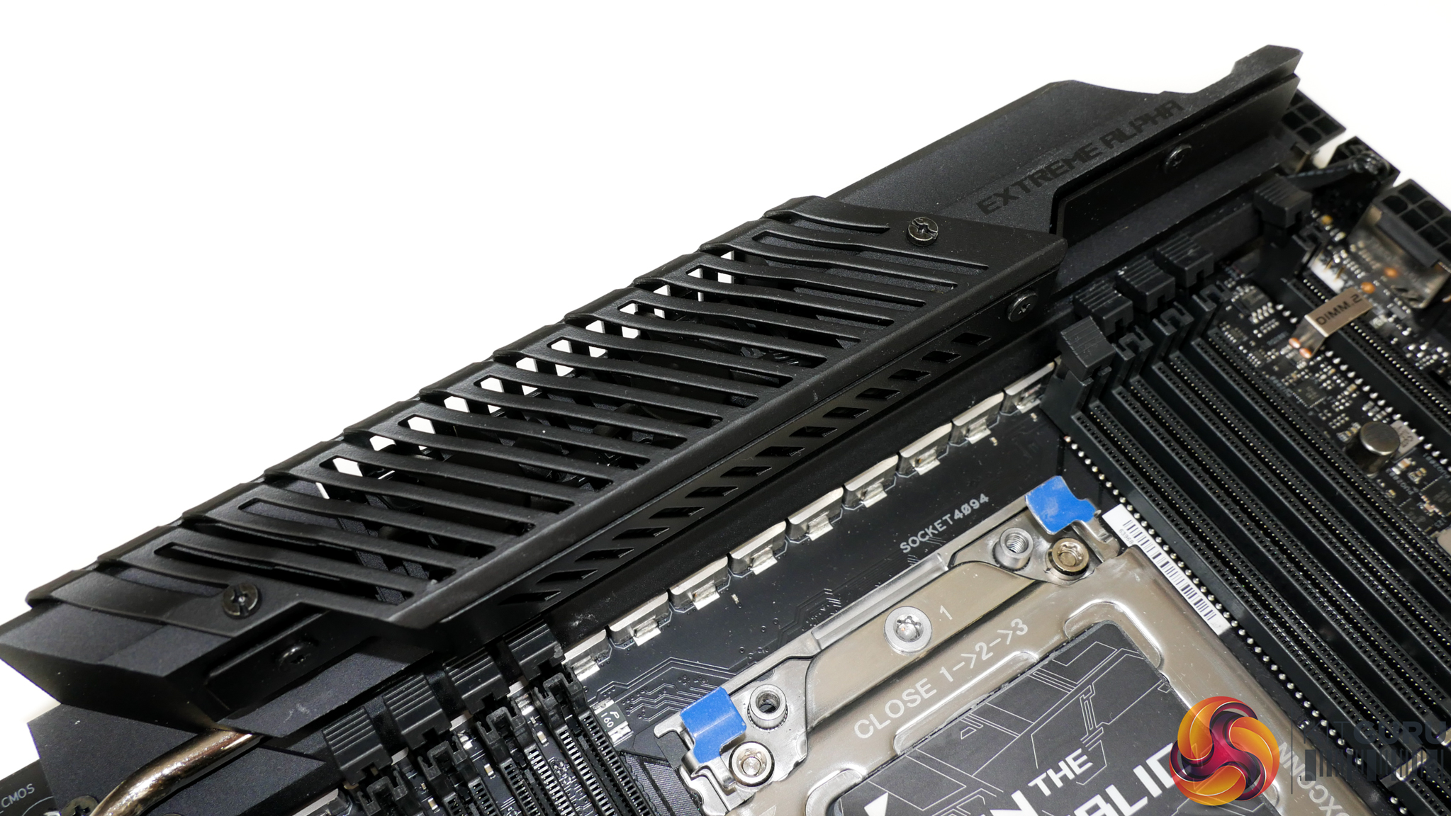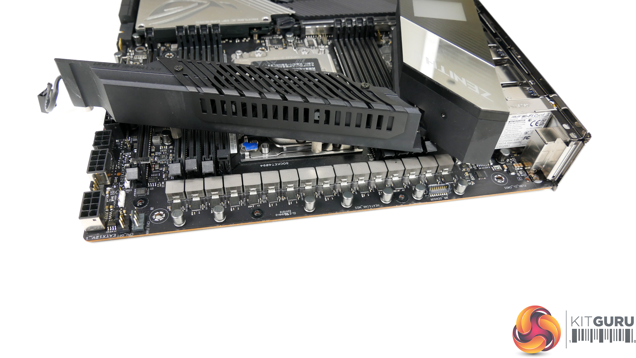 Pushing even high levels of current and power to the CPU will necessitate strong cooling for the power stages. But at that level it is likely that sub-zero cooling is being used, so proximity to chilled LN2 vapor will help with shifting heat away from the MOSFETs (if the heatsink is even retained in place, that is). Speaking of removing the heatsink, EKWB actually offers a Zenith II Extreme (and Alpha) monoblock that covers cooling of an sTRX4 CPU and the motherboard MOSFETs.