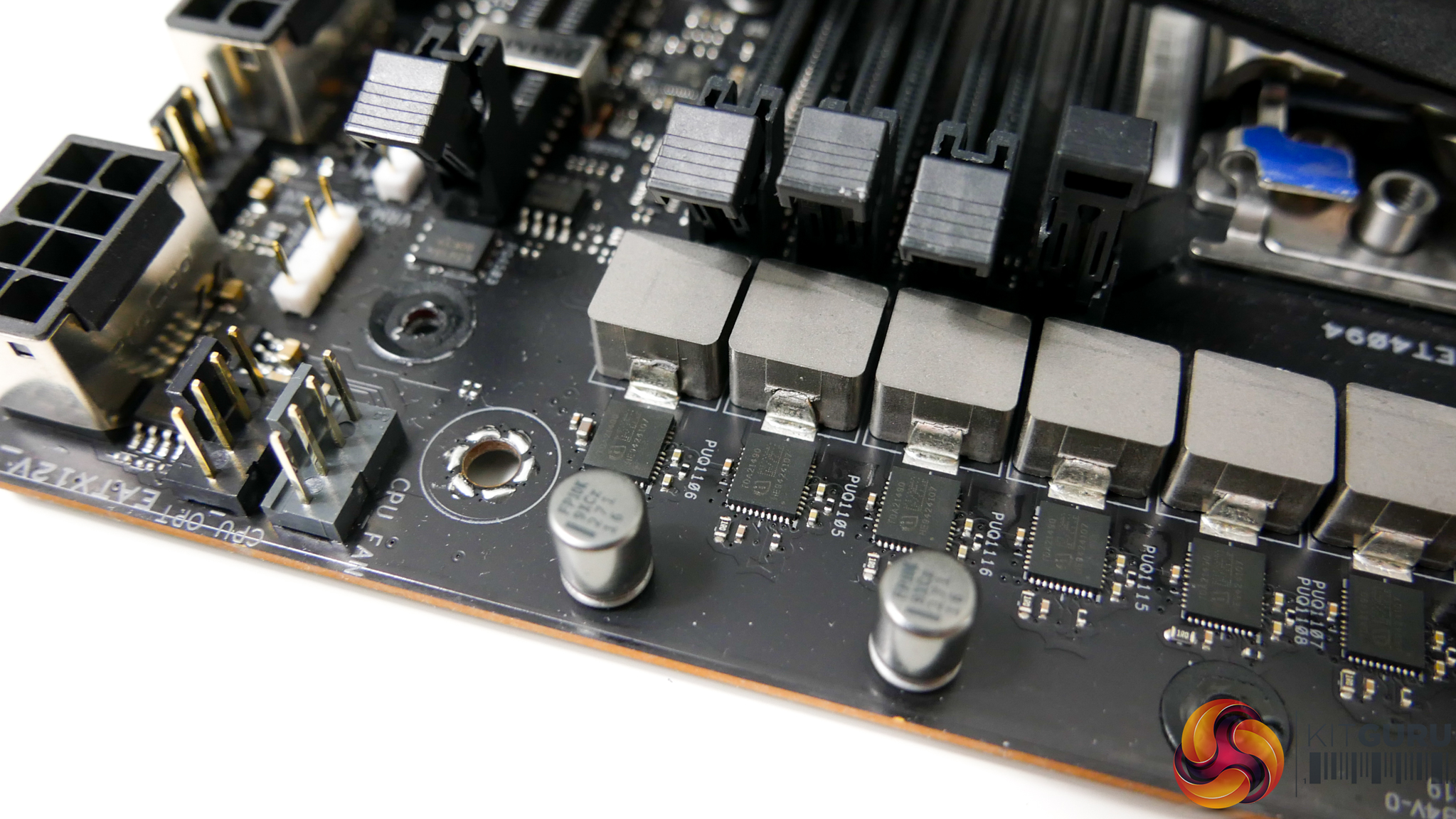 Gigabyte’s competing solutions, by comparison, use the Infineon 16-phase PWM controller even on the lower-end offerings. This true 16-phase controller used by Gigabyte is, on the face of it, a preferential solution compared to ASUS’ 8 control phases teamed power stage design.