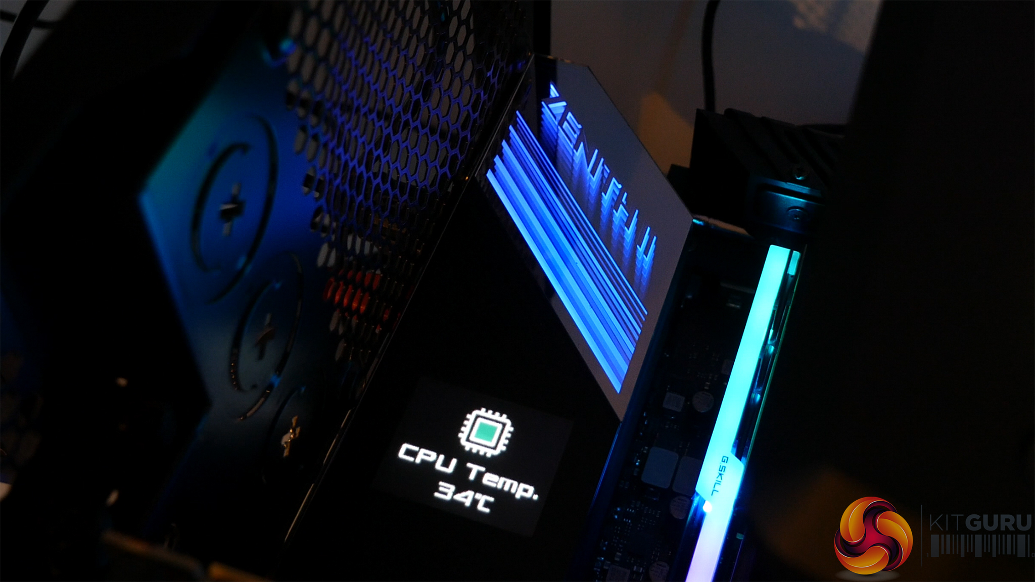 RGB lighting is primarily provided in three main zones: rear IO cover, chipset, and right edge strip. I like the subtly of ASUS' implementation and you get good control capabilities thanks to AURA software. The ‘infinity-style' RGB cover found above the LiveDash OLED display is my particular favourite as I think it looks very appealing when the system is running.
