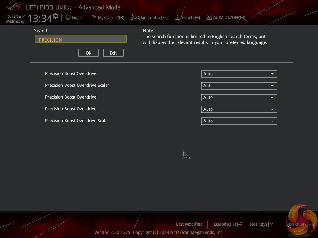 The search function is useful for quickly jumping to specific sections. ASUS gives quick access to a toggle that allows the AURA LED mode to be adjusted.