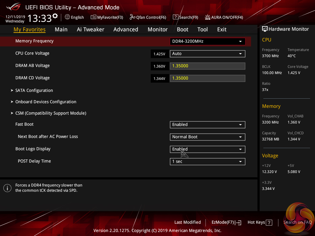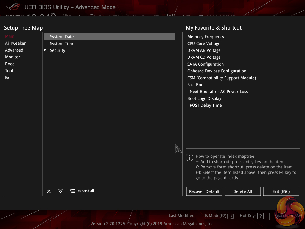 Hitting F7 allows the Advanced mode to be accessed. The Main page outlines information relating to the system and motherboard. The My Favorites tab can be convenient if you are frequently searching for a setting buried deep within the UEFI.
