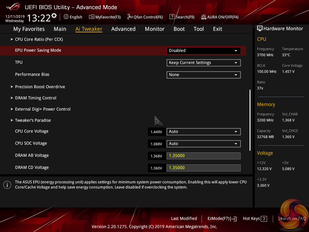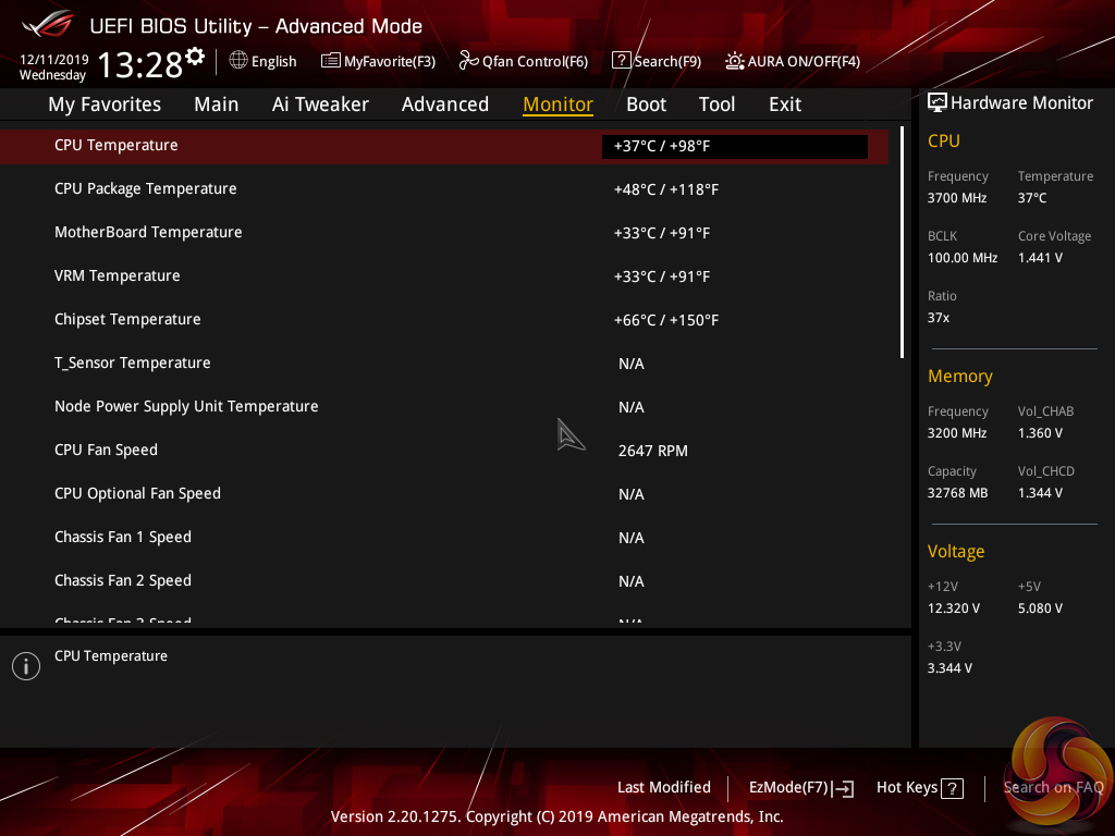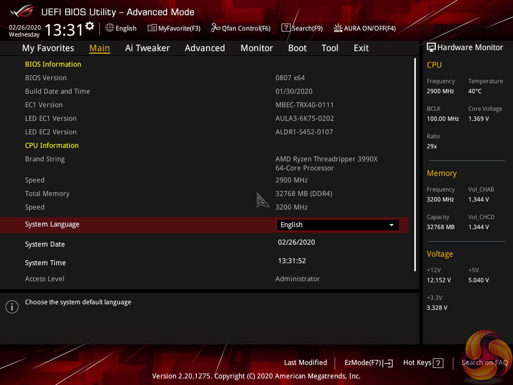 ASUS' ROG-themed UEFI software is the same implementation as what we saw on the ROG STRIX TRX40-E Gaming. As such, our analysis follows a similar tone and we have reused many of the UEFI screenshots from the previous review.
