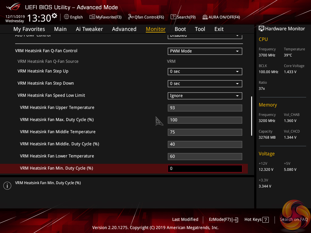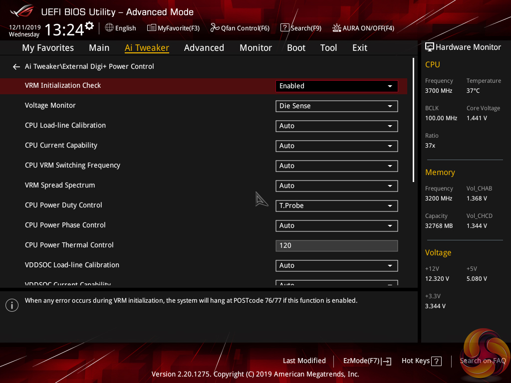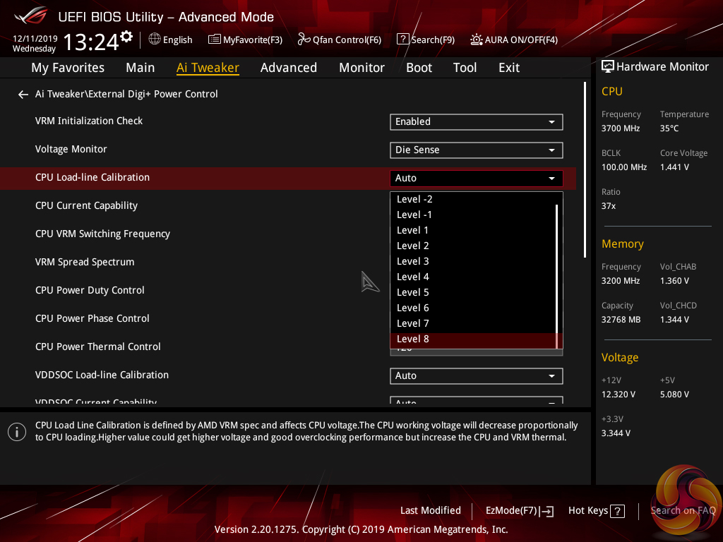 Load-line calibration (LLC) settings can be accessed through the Digi+ VRM page. ASUS provides options over multiple levels but gives no explanation of how the LLC levels work. This is frustrating as we had to resort to trial and error in order to find the desirable LLC level, which was a waste of time compared to competing vendors’ solutions of including a clear graph.