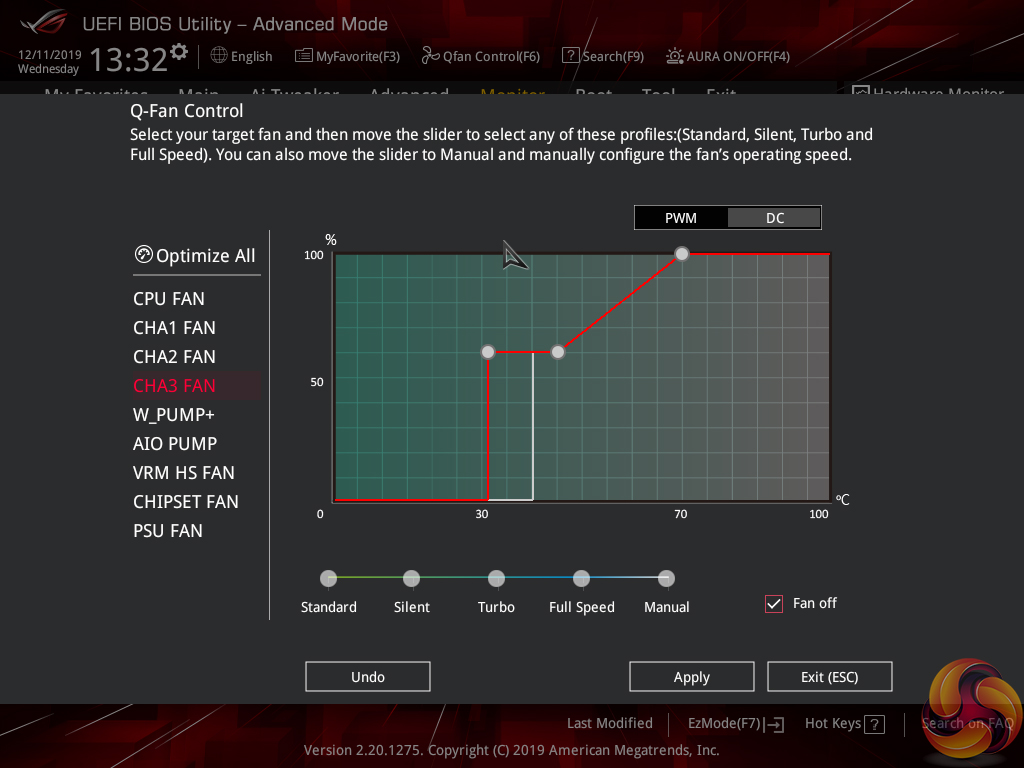 There is, however, a Fan Off setting for the non-CPU fans that allows them to power down when the relevant temperature conditions are met. While this is a useful feature in theory, I have previously seen fans succumbing to motor twitch in this mode, and the jump from 0% speed to 60% is generally audible.