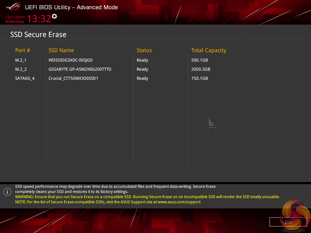 The Tool section is home to ASUS’ useful features, such as Secure Erase and EZ Flash 3 Utility.