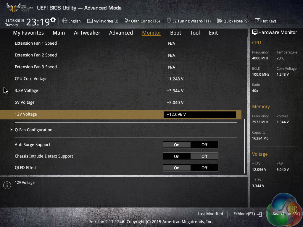 An array of voltages, temperatures, and fan speeds can be monitored in the UEFI.