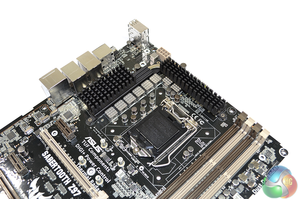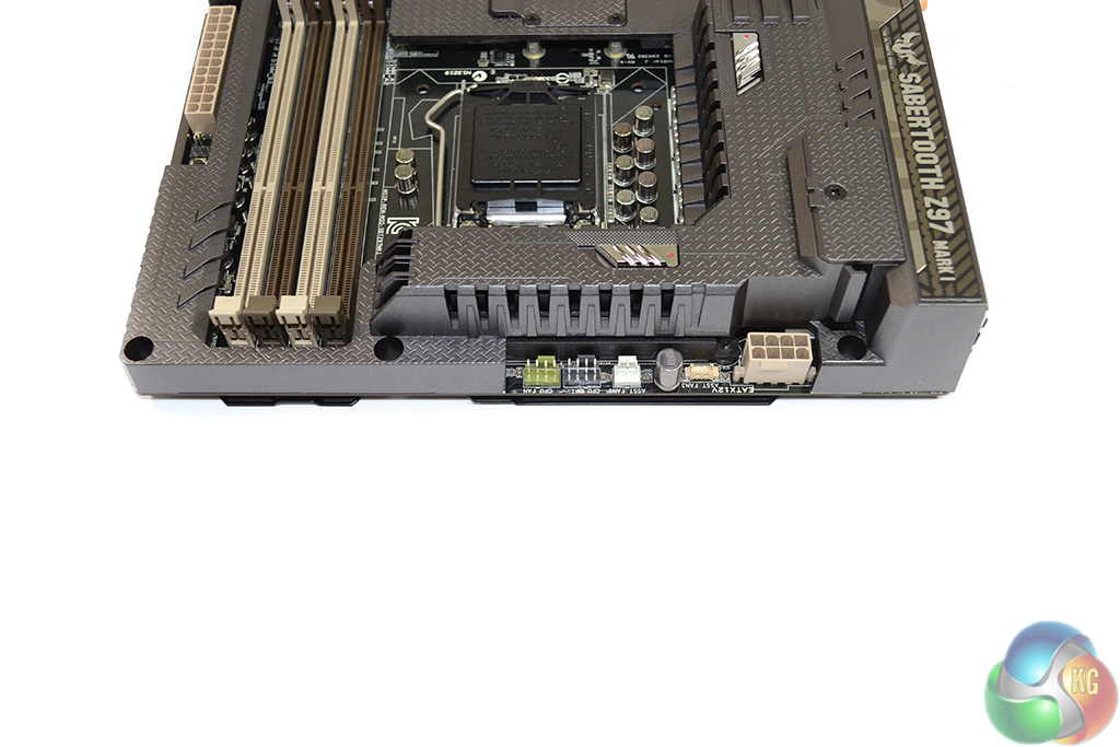 Slot layout for the Sabertooth Z97 Mark 1 is what we consider to be perfect for a Z97 motherboard. Two triple-slot cards can be installed simultaneously, or a pair of dual-slot boards can be given a cooling space between them.