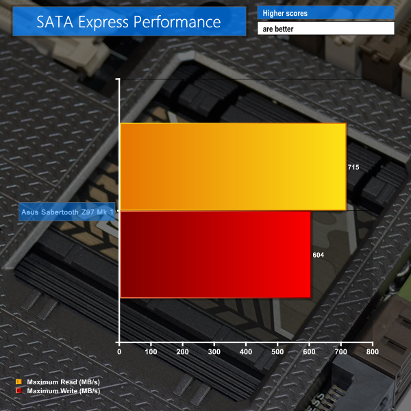 We don't have comparison data collected from the same test platform, although the numbers from our recent SATA Express article can be used as a basic reference. We will build up our database of SATA Express performance as we review more Z97 motherboards.
