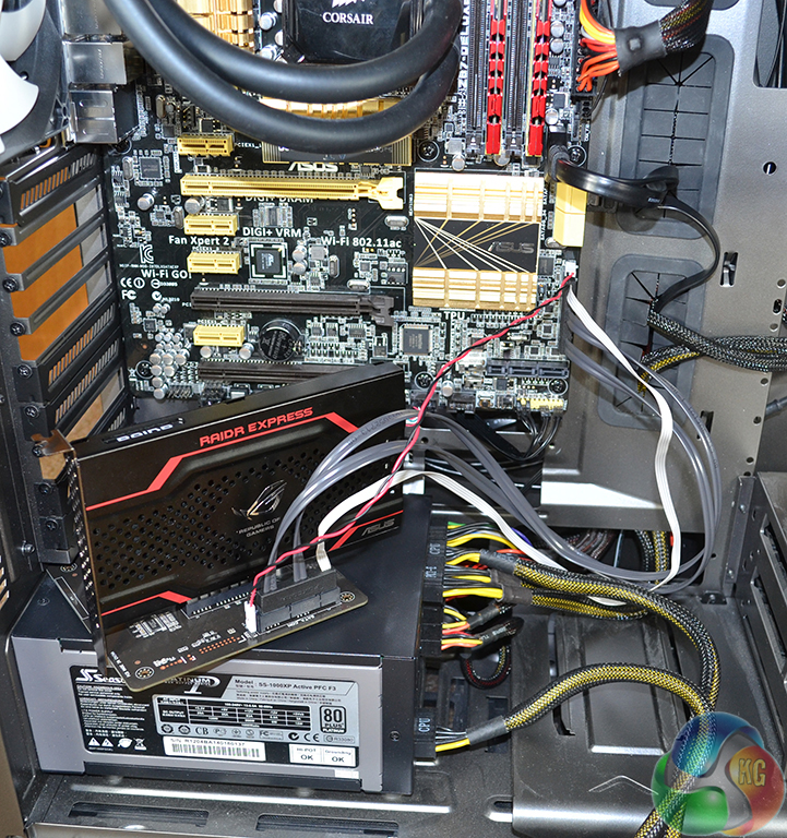 We hooked up the necessary cables and tested the SATA Express connection using the ROG RAIDR and Asus's Runway board. Our test system's Windows 7 64-bit OS was installed on a Samsung 840 SSD.