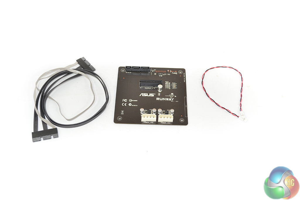 To overcome this problem, Asus uses a custom-built board which connects to the motherboard via SATA Express. Attached to this board (called Runway) is a physical PCIe slot which allows a PCIe device to be connected.