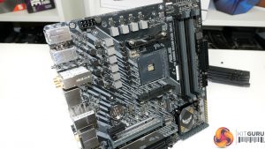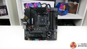 It would have been better to have both slots cooled, but if only one heatsink can be included, ASUS made the correct decision in our opinion. The caveat is that an SSD installed in the top slot will use its own heatsink and this may cause a clash with the system aesthetics. That’s less of an issue for Corsair’s attractive MP600 than it is for the Aorus Gen 4 SSD.
