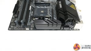 ASUS’ slot layout is not ideal, but the decisions are perhaps a necessary evil. A 2.5- or 3-slot graphics card will render the bottom full-length PCIe slot useless as it cannot be accessed. This leaves only an x1 connection for expansion, but we would argue that an x1 slot is less useful than the full-length x4.