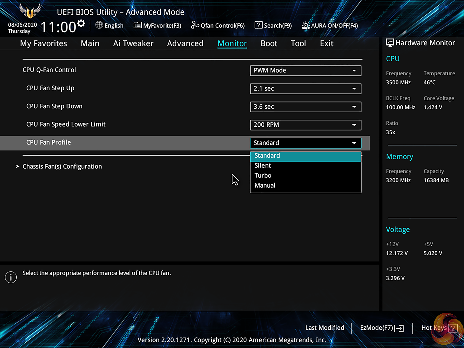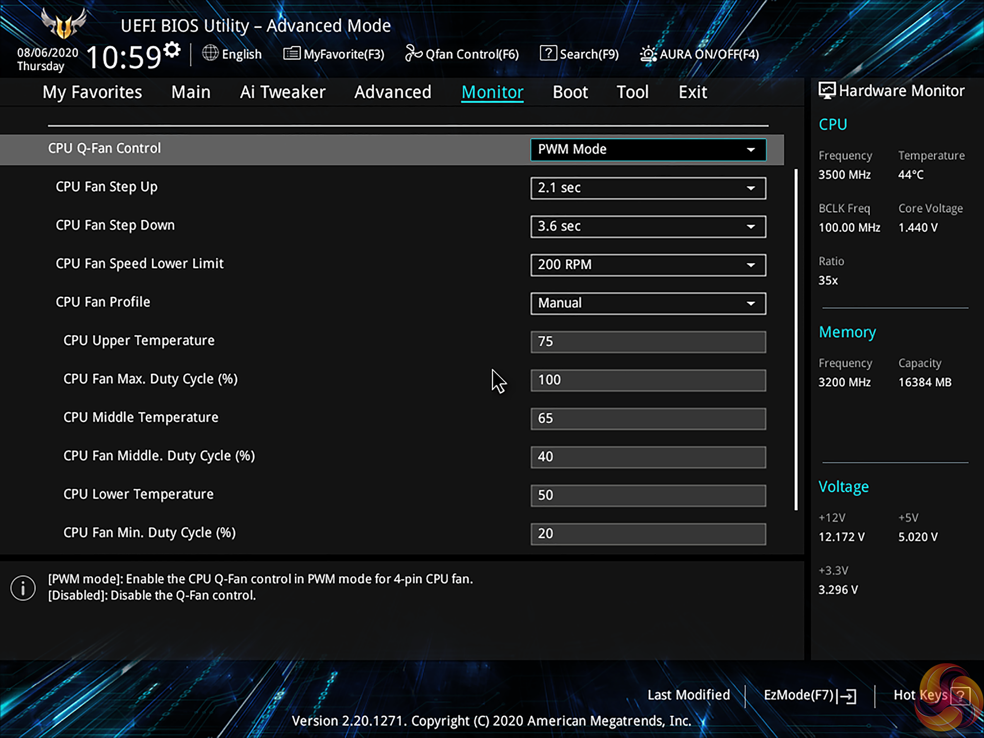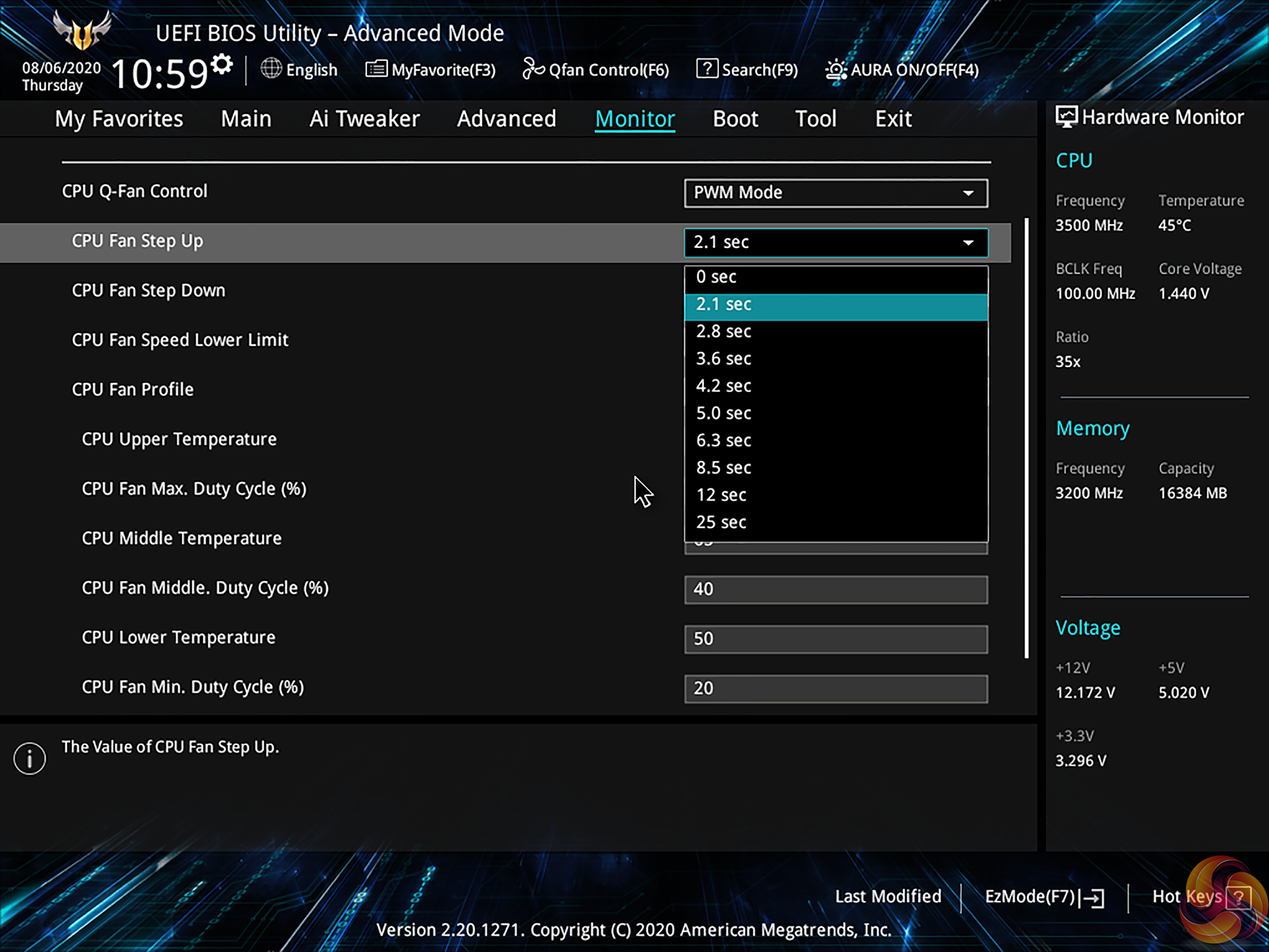 You get curve control via three temperature points, though the minimum fan speed level that can be set is 20%. You can also apply a Fan Off setting when using DC control, thus allowing the fan to spin down, provided the specific model is able to do so correctly.
