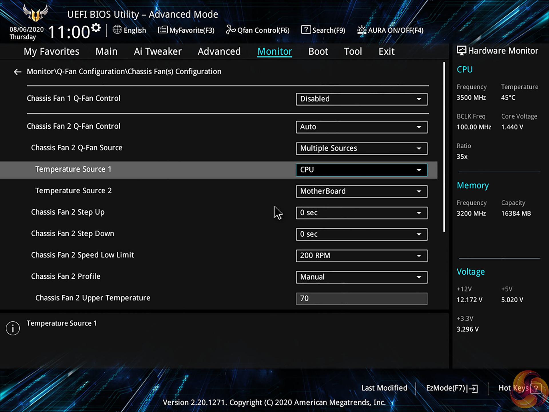 A chassis fan header can have multiple temperature sources (CPU or MB) which is good for control granularity. It would have been good to have VRM temperature as a sensor source for the fan control.
