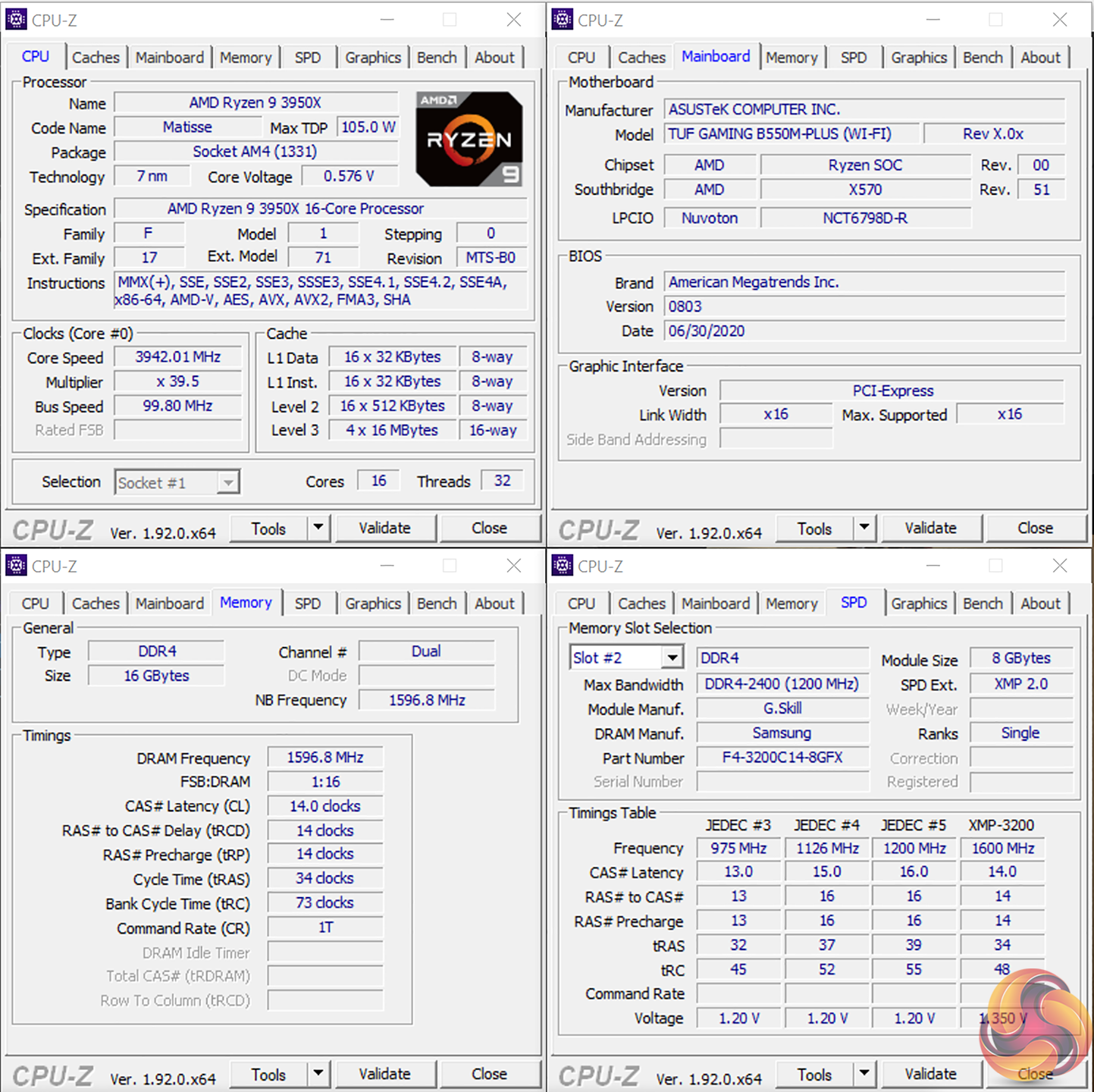 - Memory: 16GB (2x8GB) G.SKILL 3200MHz CL14 DDR4 @ 1.35V.