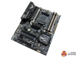 Styling for the Sabertooth 990FX R3.0 is typical for a TUF Sabertooth board. The PCB features a camo black and grey styling with a reflective finish while hints of beige and white are sprinkled around the board adding to the military-style theme. RGB lighting, primarily found on the PCIe slot connectors, can be used to add customisable colours.