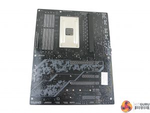 The ‘TUF’ power delivery components are made up of ON Semiconductors 4C06B and 4C09B MOSFETs for the high and low side as well as 5000-hour-rated capacitors and alloy chokes. Managing the system is an ASUS-packaged Digi+ VRM EPU ASP1000C PWM controller which seems to provide 5 true phases for the CPU that are doubled to 10 physical phases using IRC S598 EXLRP doublers/drivers mounted on the rear. Cooling for the MOSFETs looks to be proficient and clock gen duties are handled by an ICS chip.