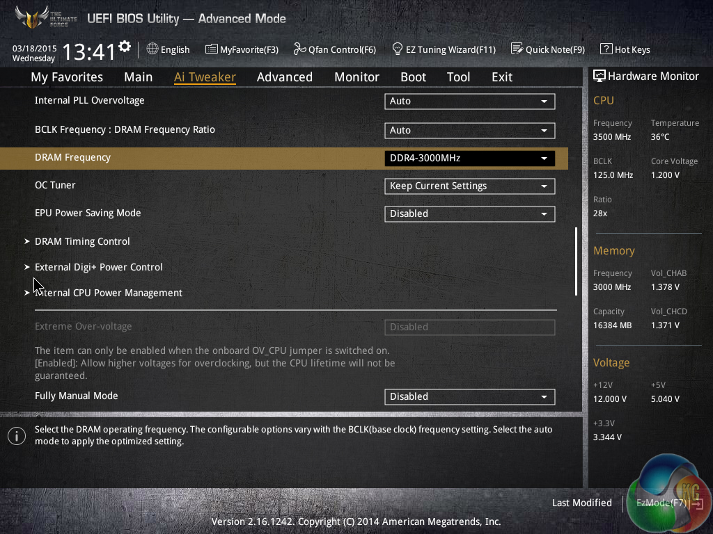 The main overclocking settings are easy to access in Asus' UEFI. However, a few of the settings – namely LLC and CPU Integrated VR Faults Management – are a little more difficult to locate.