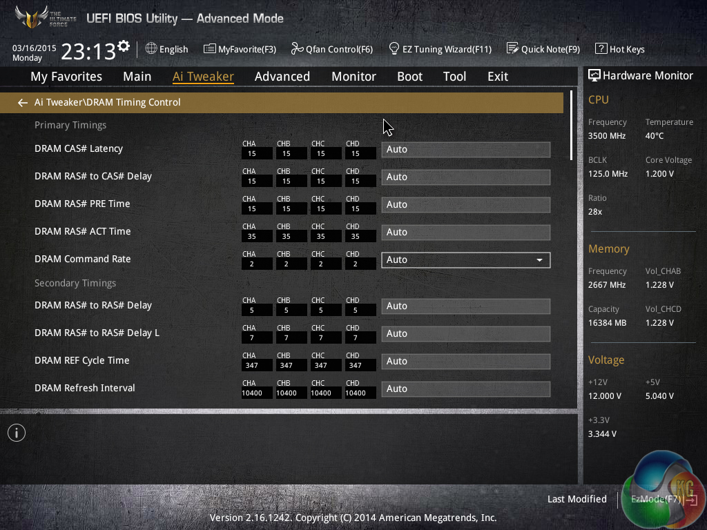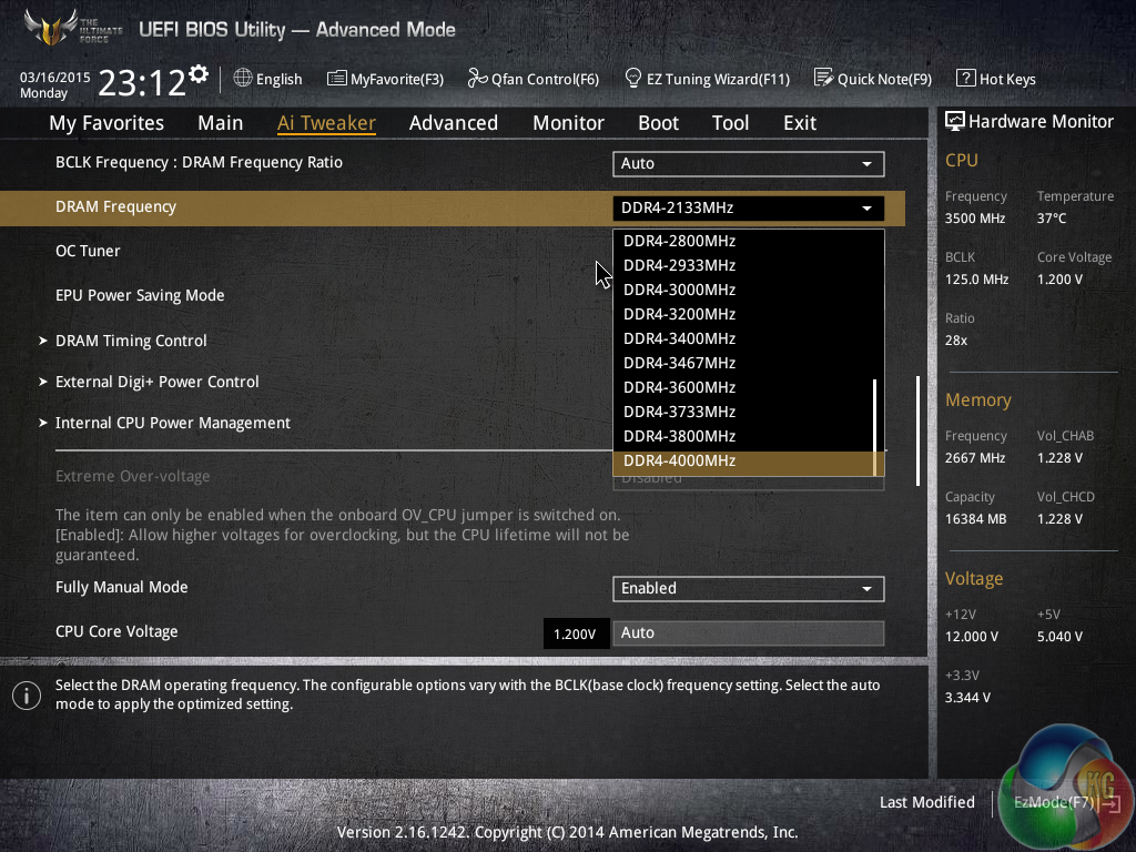 Asus provides support for plenty of memory frequency dividers, even if not all of them are relevant for usage today. There are also extensive timings adjustment options.