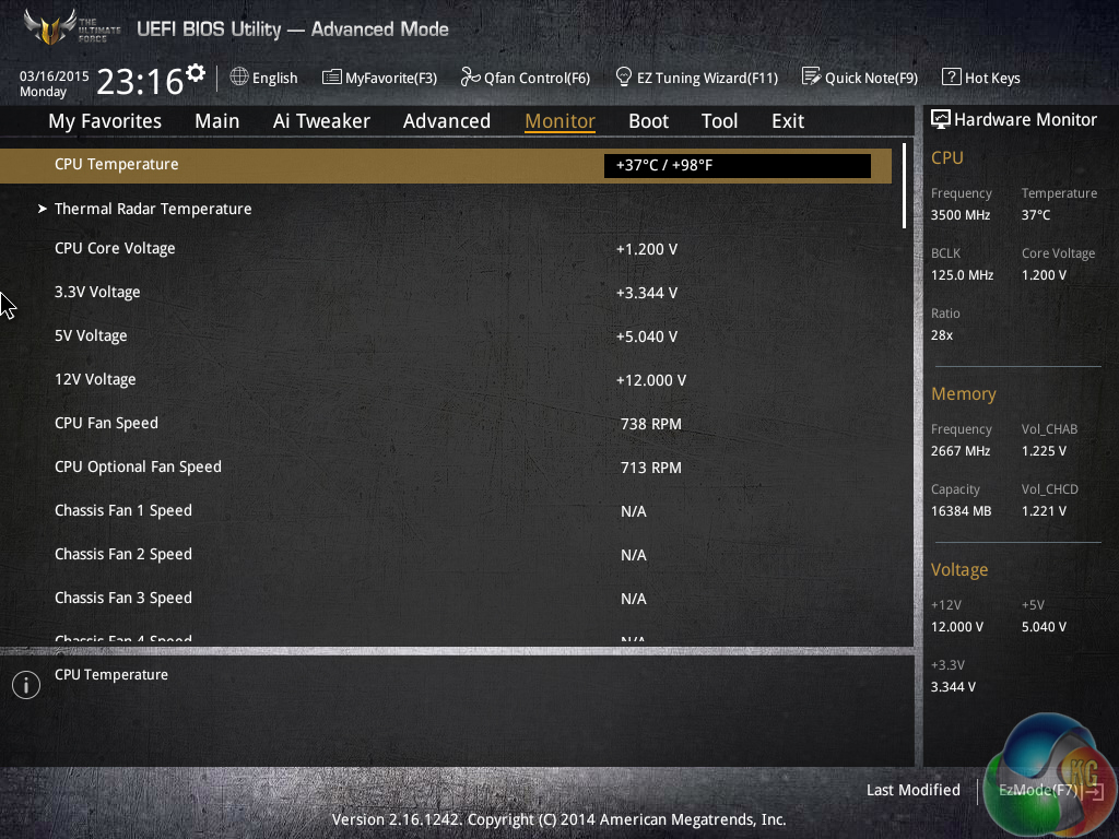 Extensive fan control and monitoring abilities are particularly important for the TUF Sabertooth X99 motherboard. Asus delivers on this front.