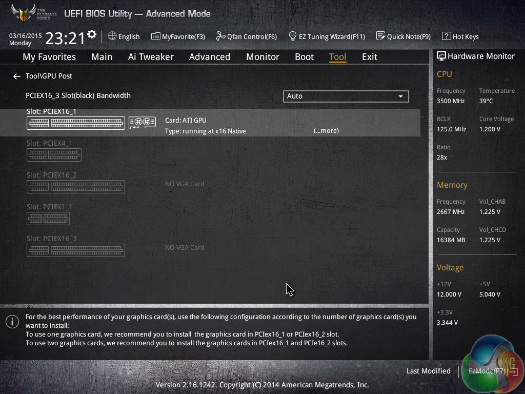 Asus' four tools include a section for reading GPU-related information, the excellent EZ Flash 2 BIOS updating utility, the eight profile saving slots, and a DRAM information page.