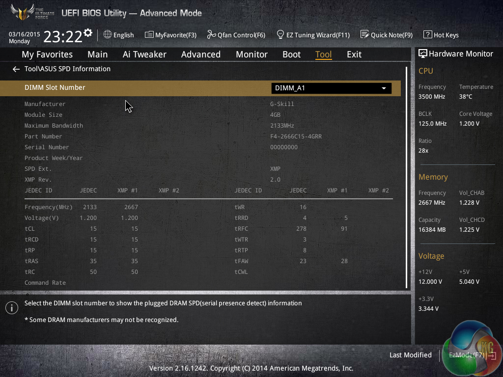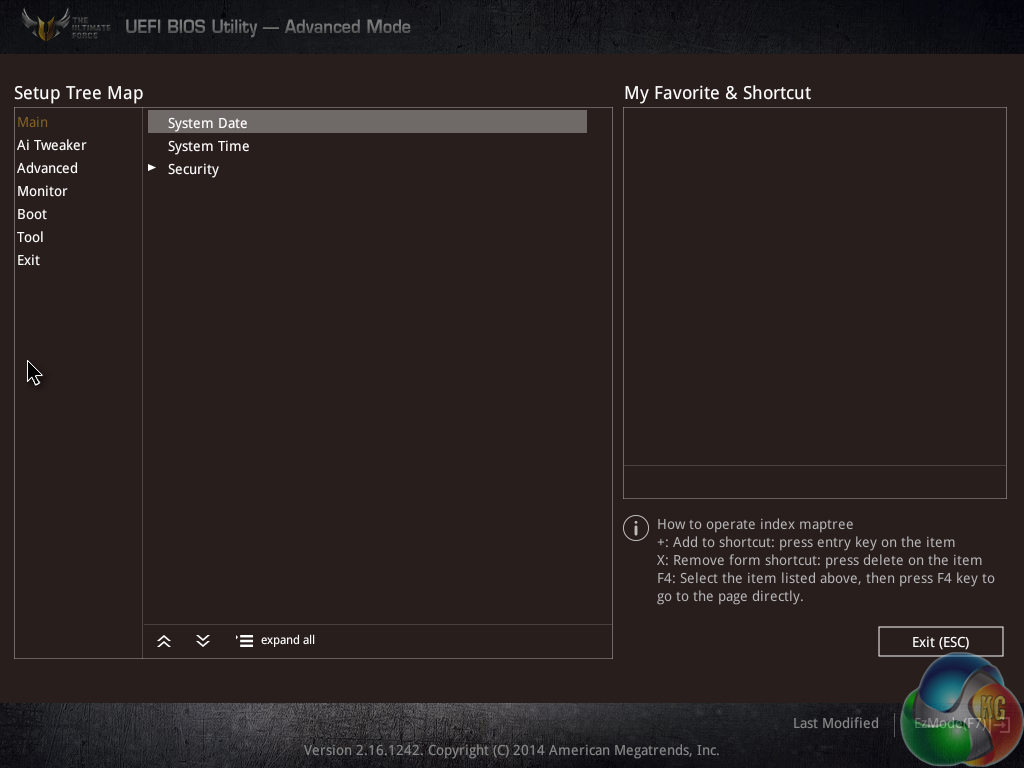 Asus opens its X99 UEFI with a summary page, of sorts, that squeezes a significant proportion of the important information onto a single 1024×768 screen.