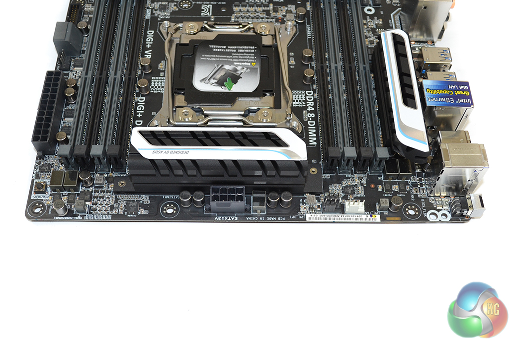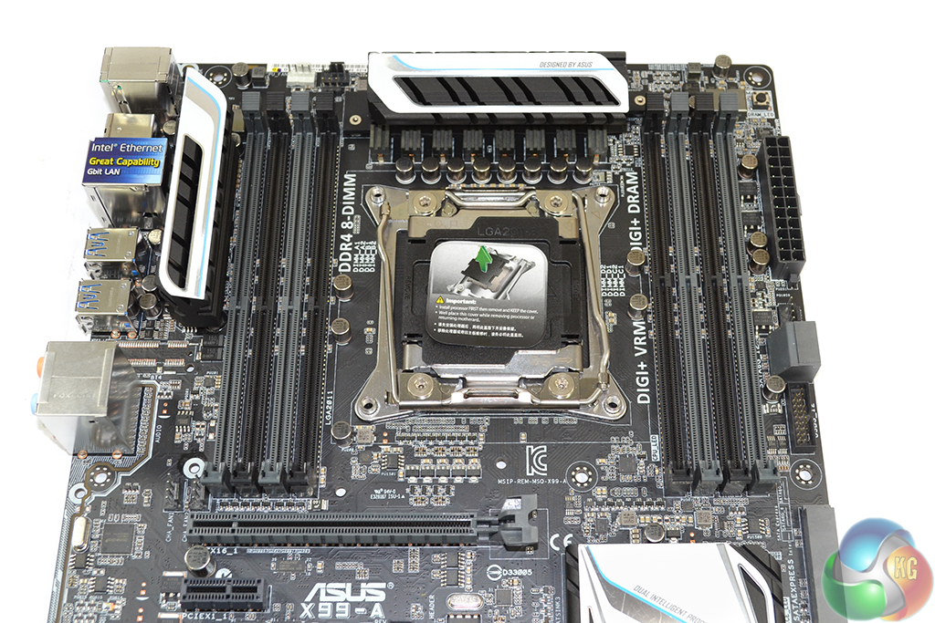 Up to 64GB of DDR4 memory can be installed in the X99-A. Asus claims support for 3200MHz DRAM speeds, although that will be heavily related to whether the current BIOS implementation can run with those speeds or not.