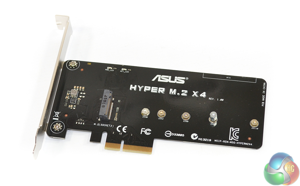 Storage accessories come in the form of a mounting bracket to hold up to 80mm-long M.2 devices in the vertically-orientated 32Gbps M.2 x4 slot. Alternatively, Asus includes a PCIe x4 adapter card to hold M.2 devices up to 110mm-long. It doesn't matter whether you opt for the onboard M.2 connection or that provided by the adapter card because the PCIe Gen 3 lanes will always be taken from the CPU. Using the latter differs by its potential to obstruct multi-GPU configurations.