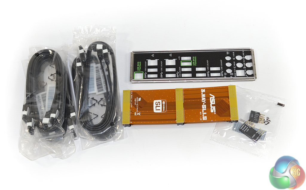 One notable exclusion is a dedicated 2-way SLI bridge. Asus tells us it was probably left out to minimise added costs. Bypassing the bulky 3-way bridge is as easy as jumping on eBay and purchasing a dedicated 2-way ribbon, although I don't feel that should be a requirement after spending almost £300 on a motherboard.