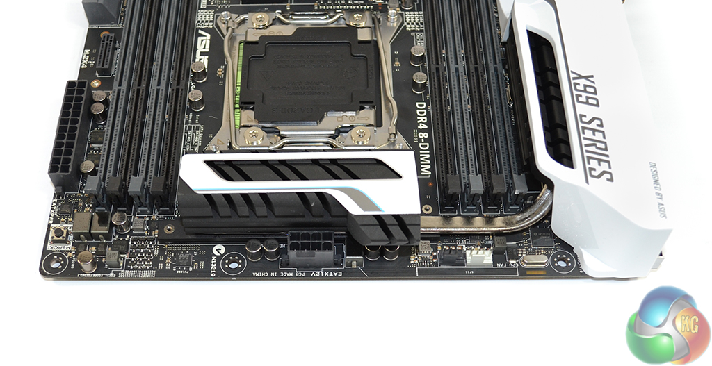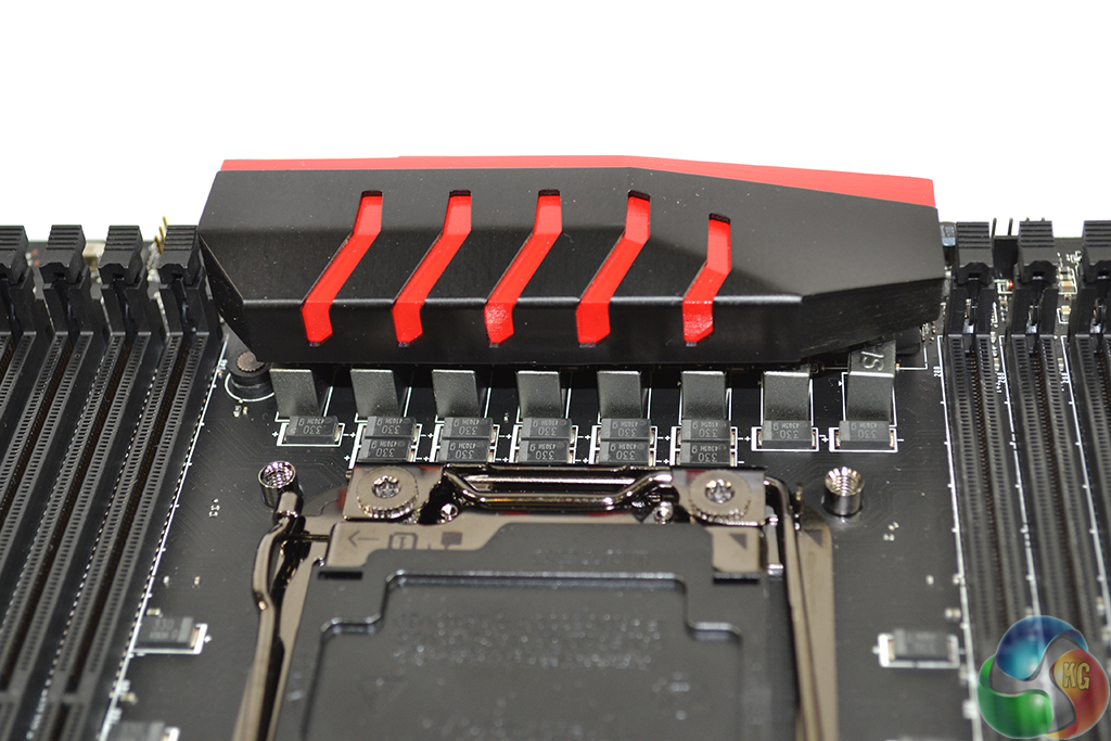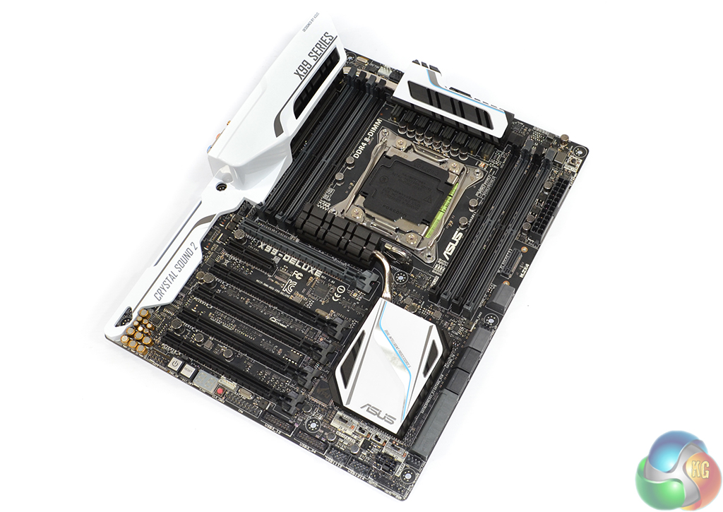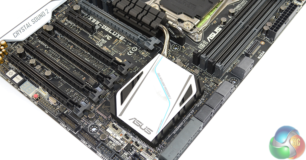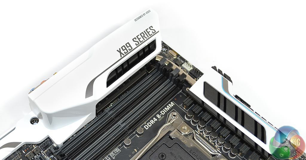 Bright white heatsinks cool the MOSFETs and X99 chipset while adding an eye-catching appearance.