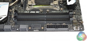 Moving further down the motherboard we see a total of twelve SATA 6Gbps ports, four of which double up as a pair of 10Gbps SATA Express connections. The lower SATA Express connection (and its built-in SATA 6Gbps ports) operates from ASMedia's ASM106SE add-on chipset, while all of the other SATA/SATA Express connections are provided natively by X99.