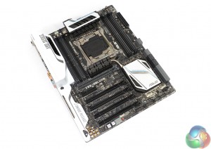 The Asus X99 Deluxe motherboard's most striking design feature is glaringly evident; Asus takes a bold risk and outfits the X99 Deluxe with a black and white colour scheme. I must admit that I am typically a fan of black and white, although I also know how easily it can be ruined.